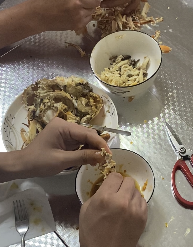以往吃螃蟹只知道清蒸加醋,这次面对这些好品质的大闸蟹想着可以挑战一下制作蟹黄面,也不枉她人一番心意。